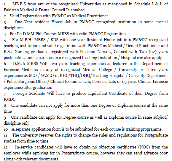 - The admission process shall be made through Postgraduate Medical Center, PUMHS Nawabshah in the courses which meet the recognition criteria of PMDC.